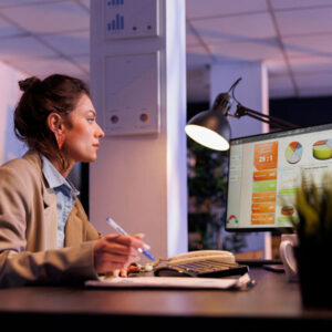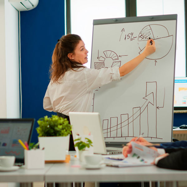 O aluno desenvolve estudos de mercado, análise de dados, compreensão de cenários, públicos e oportunidades, formando base para decisões estratégicas.